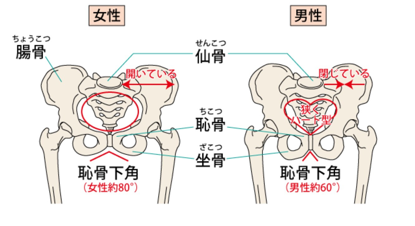 女性は出産に備えて、骨盤が男性より横に広いつくりになっています。