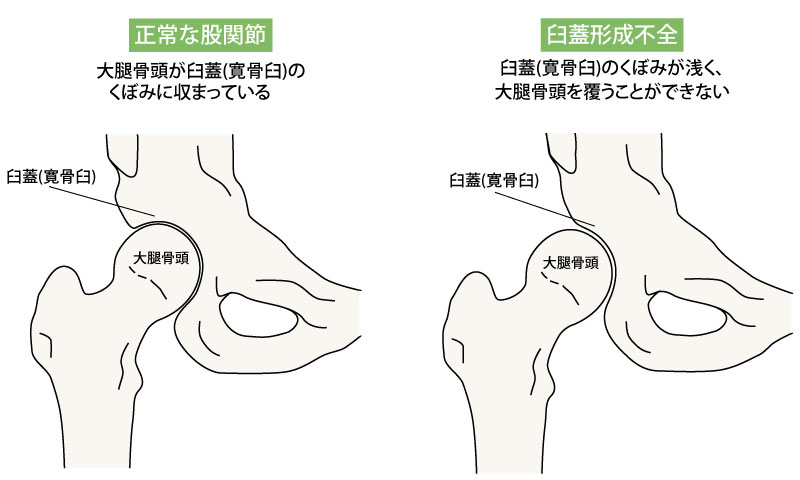 「臼蓋形成不全(股関節の受け皿が浅い)」というタイプ。
