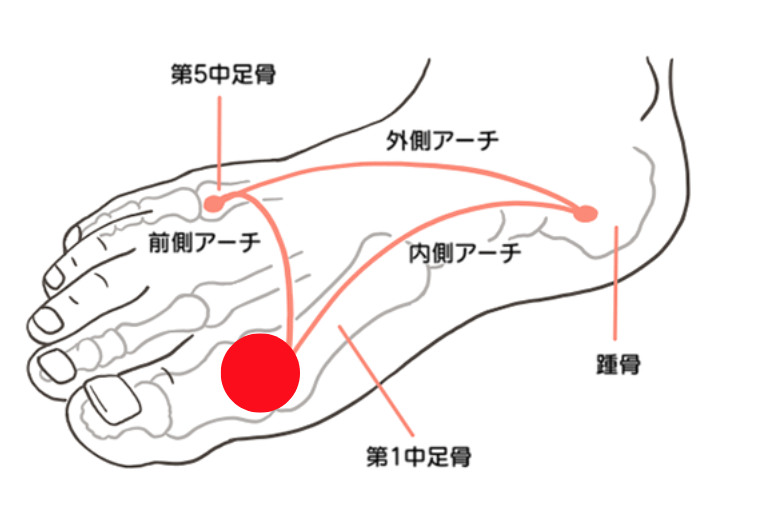 また、内側縦アーチの部分に負担が集中すると扁平足になっていってしまいます。