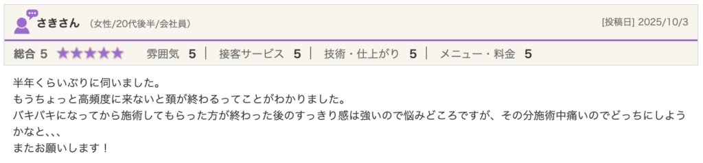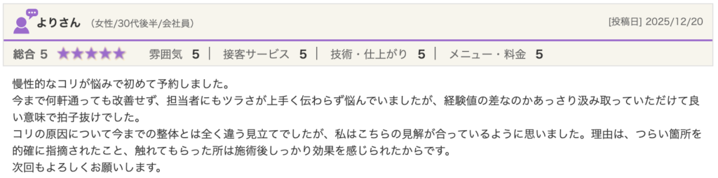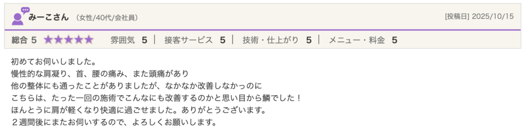 CONTENTS コンテンツ TOPCONTENTS口コミお客様の声 2026/01/21 お客様の声 口コミ こちらではお客様の声をお届けさせていただきます。 同じ悩みがある方はぜひ参考にしてみてください! 一覧へ戻る